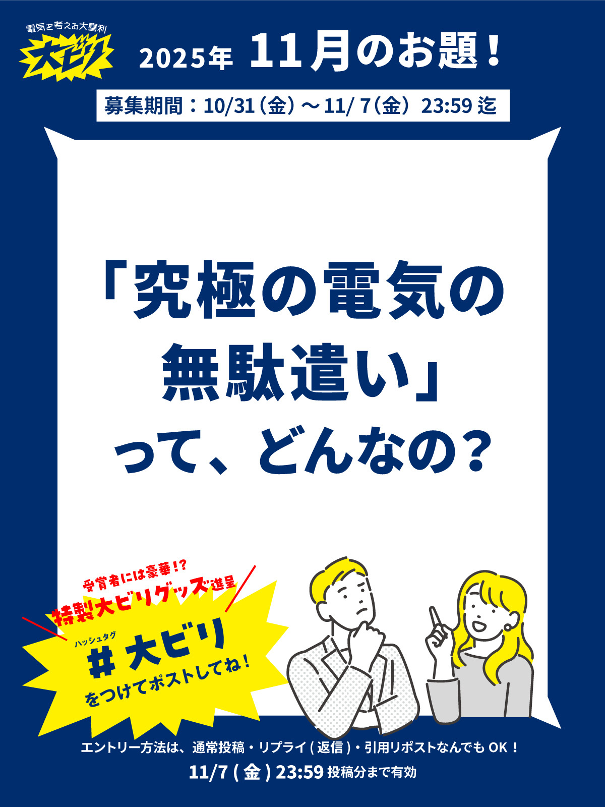 ・受賞の発表は、当協会主催のWebサイト「電気を考える大喜利 #大ビリ」公式サイト内及びXにて発表いたします。
