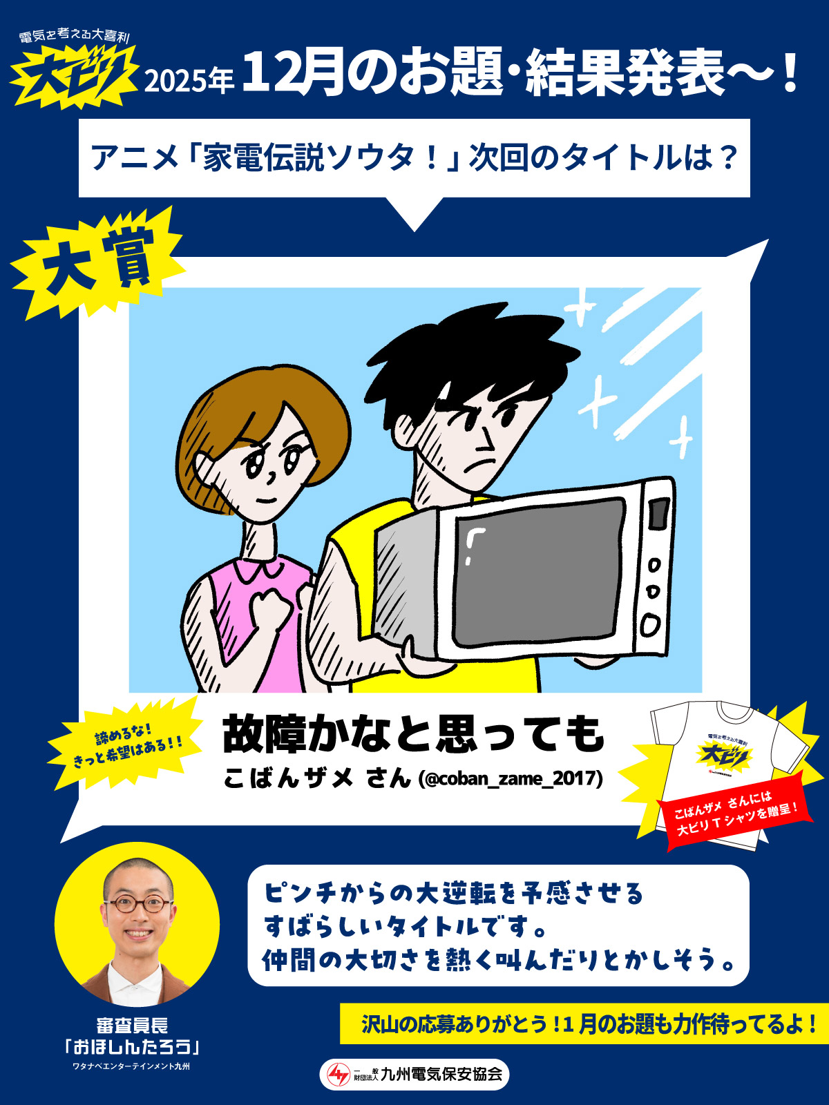 ・受賞の発表は、当協会主催のWebサイト「電気を考える大喜利 #大ビリ」公式サイト内及びXにて発表いたします。